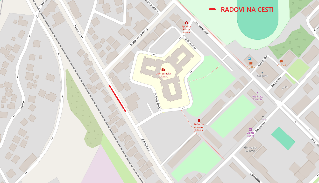 Obavještavamo građane o privremenoj izmjeni režima saobraćaja u ulici Kulina bana za dan 23.12.2025. godine u vremenskom periodu od 07:00 do 17:00 sati, u smislu sa dvosmjernog na naizmjenično odvijanje saobraćaja, zbog istovara građevinskog materijala od strane SUBAŠIĆ GRADNJA d.o.o. Tuzla.