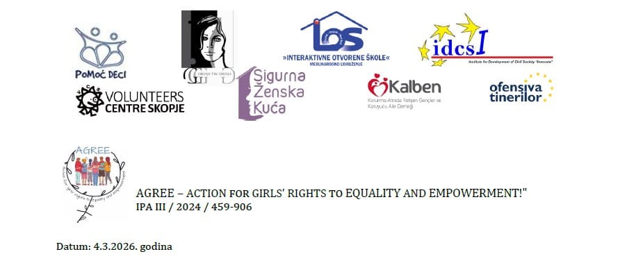 Međunarodno udruženje “Interaktivne otvorene škole” (MIOS) Tuzla poziva predstavnike/ce omladinskih organizacija i organizacija civilnog društva, iz cijele Bosne i Hercegovine da se prijave na treninge za lokalne inicijative i omladinsko djelovanje koji se organizuju u okviru regionalnog projekta AGREE! – Akcija za prava djevojaka na jednakost i osnaživanje (engl. Action for Girls’ Rights to Equality and Empowerment), finansiranog od strane Evropske unije u okviru IPA III programa.
